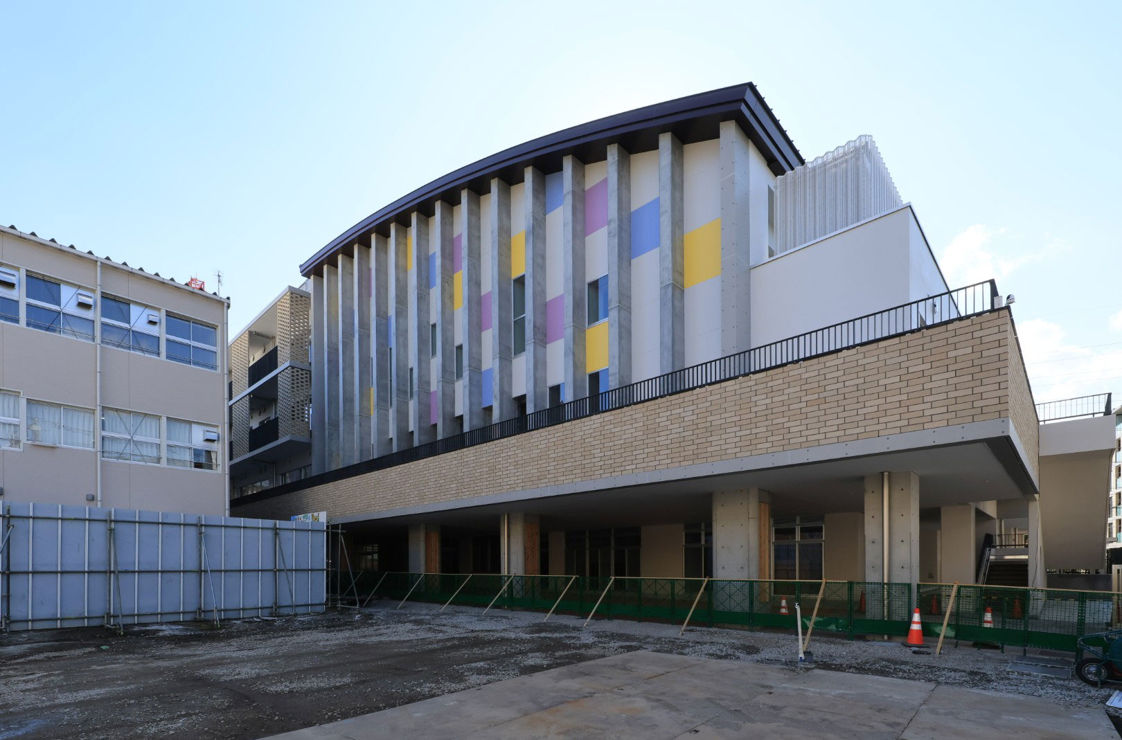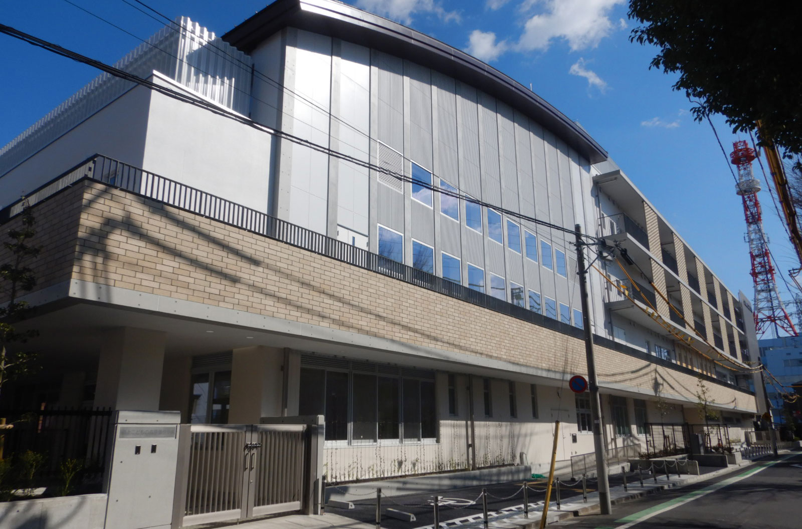 場所は歴史と文化と人情の東京下町、思わずゲタを履いた警察官を探してしまう、葛飾区亀有にあります「道上(みちうえ)小学校」緩やかなカーブが綺麗な片流れ屋根を施工させて頂きました。