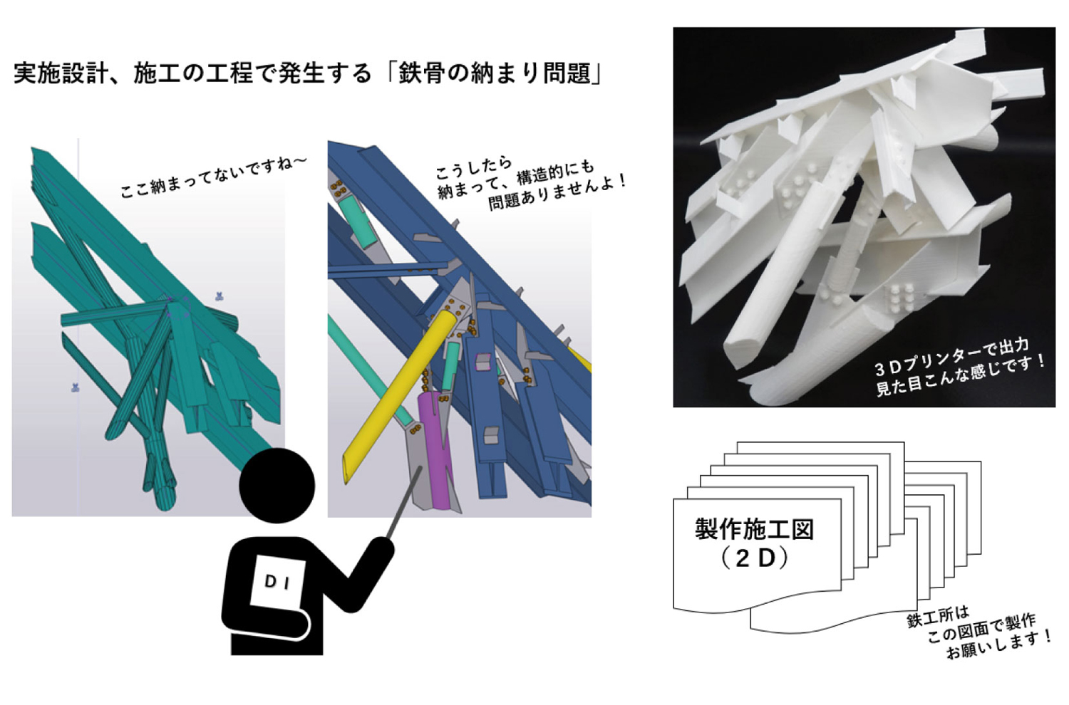 実施設計、施工の工程で発生する「鉄骨の納まり問題」