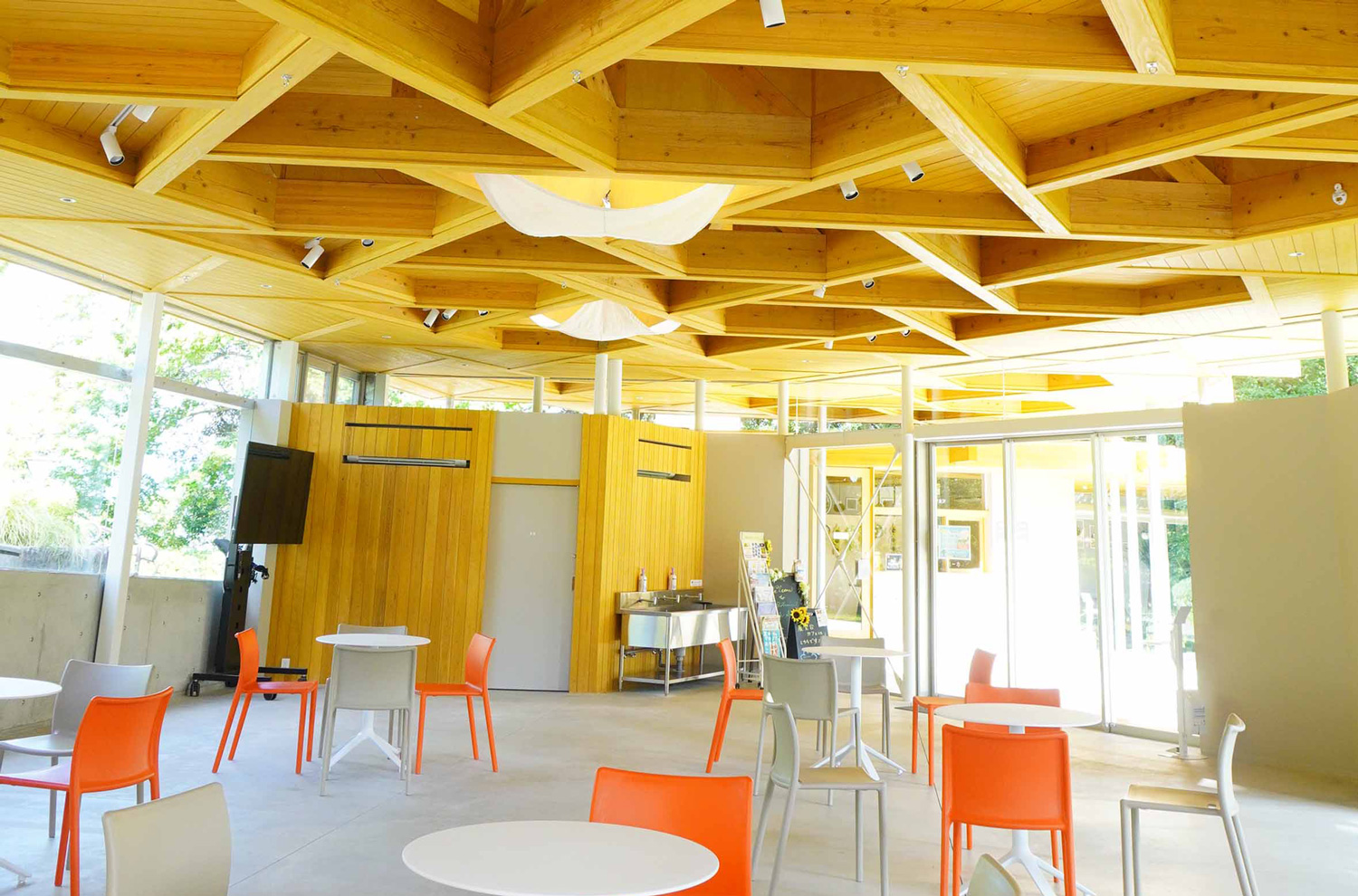 天井の木材の接手にも鉄を使用し、室内の柱を減らせるだけの強度を確保したことで、セミナーやイベントを行える大空間が確保できました。