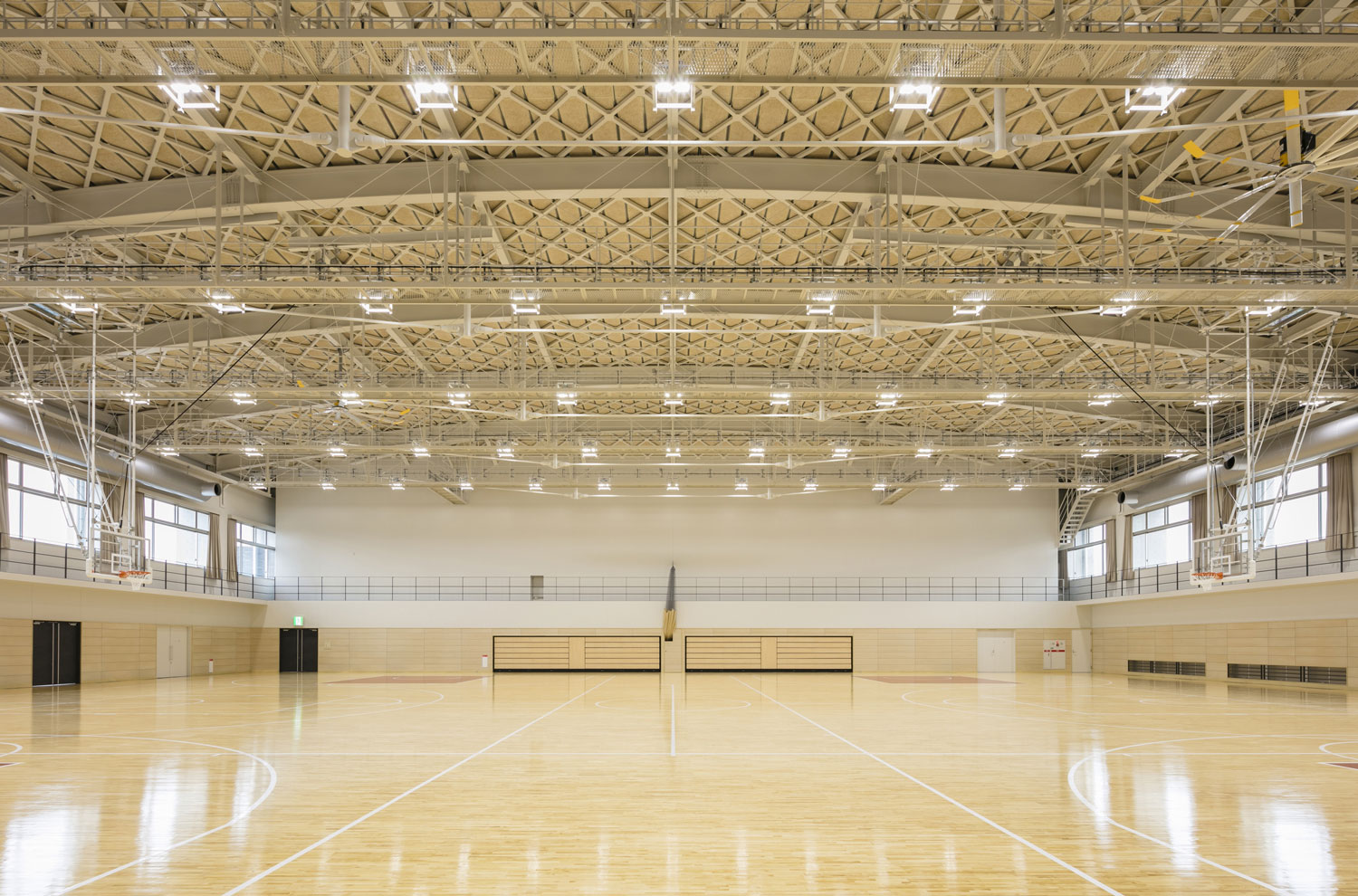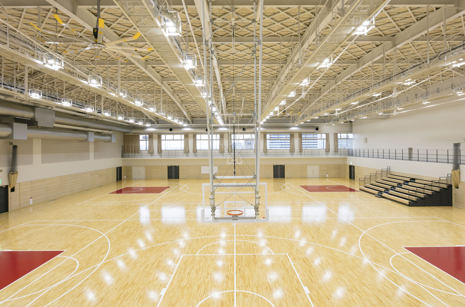 バスケットボールコートの他、バトミントンコート、バレーボールコート、剣道場、柔道場、卓球場など様々な運動部の為の施設が完備されています。