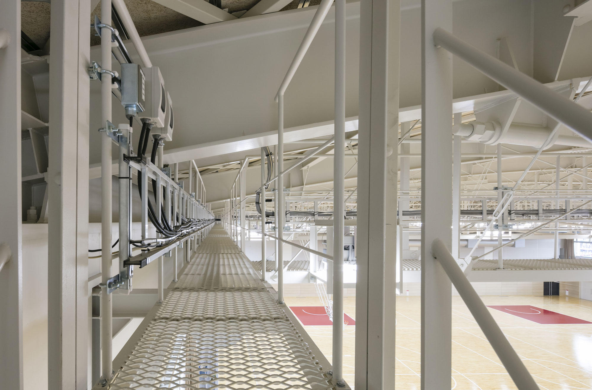 最上階の4階バスケットボールコートには、DI式スペースネット工法が採用されています。