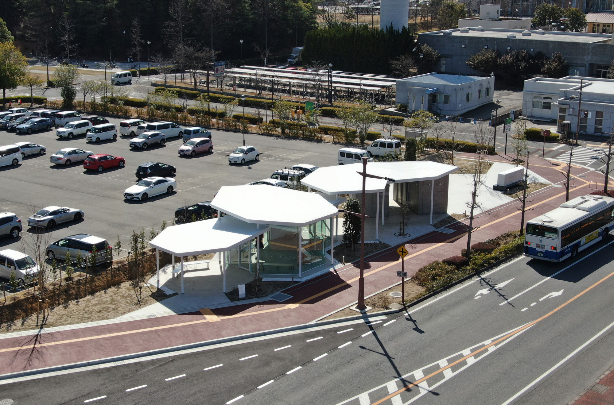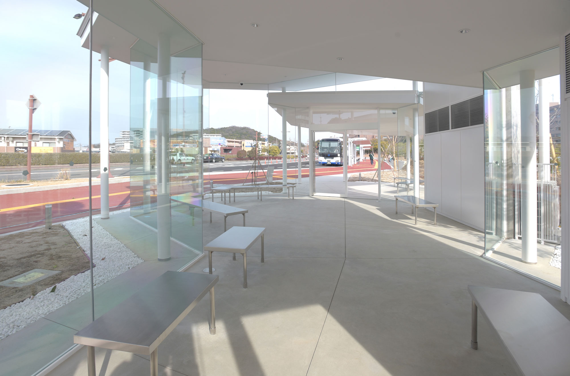 令和5年 竣工 白を基調にしたとても美しいバス待合所。