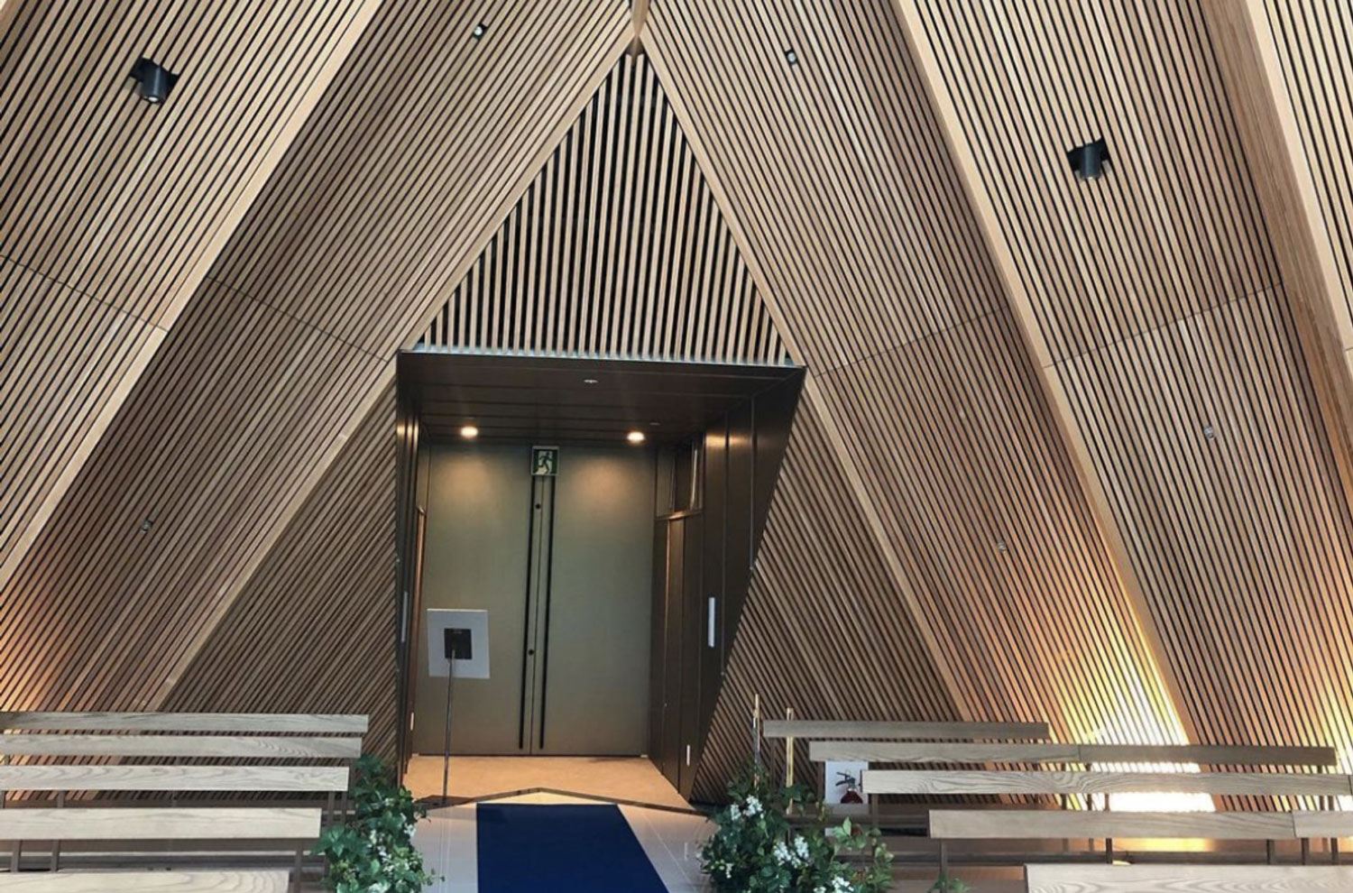 内装は、木のルーバーがとても美しい仕上がりを実現。ここにもBIMの技術が活かされました。
