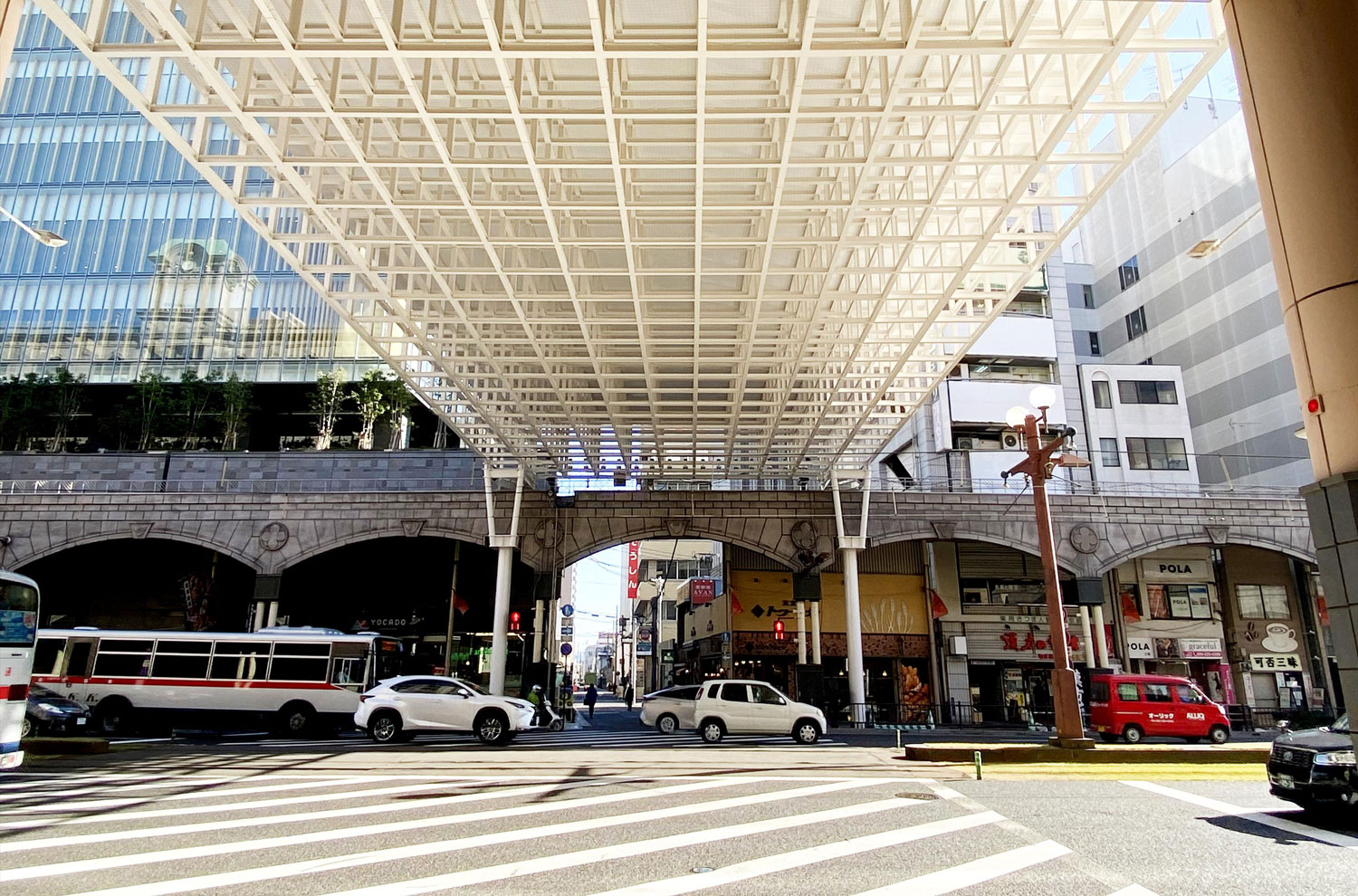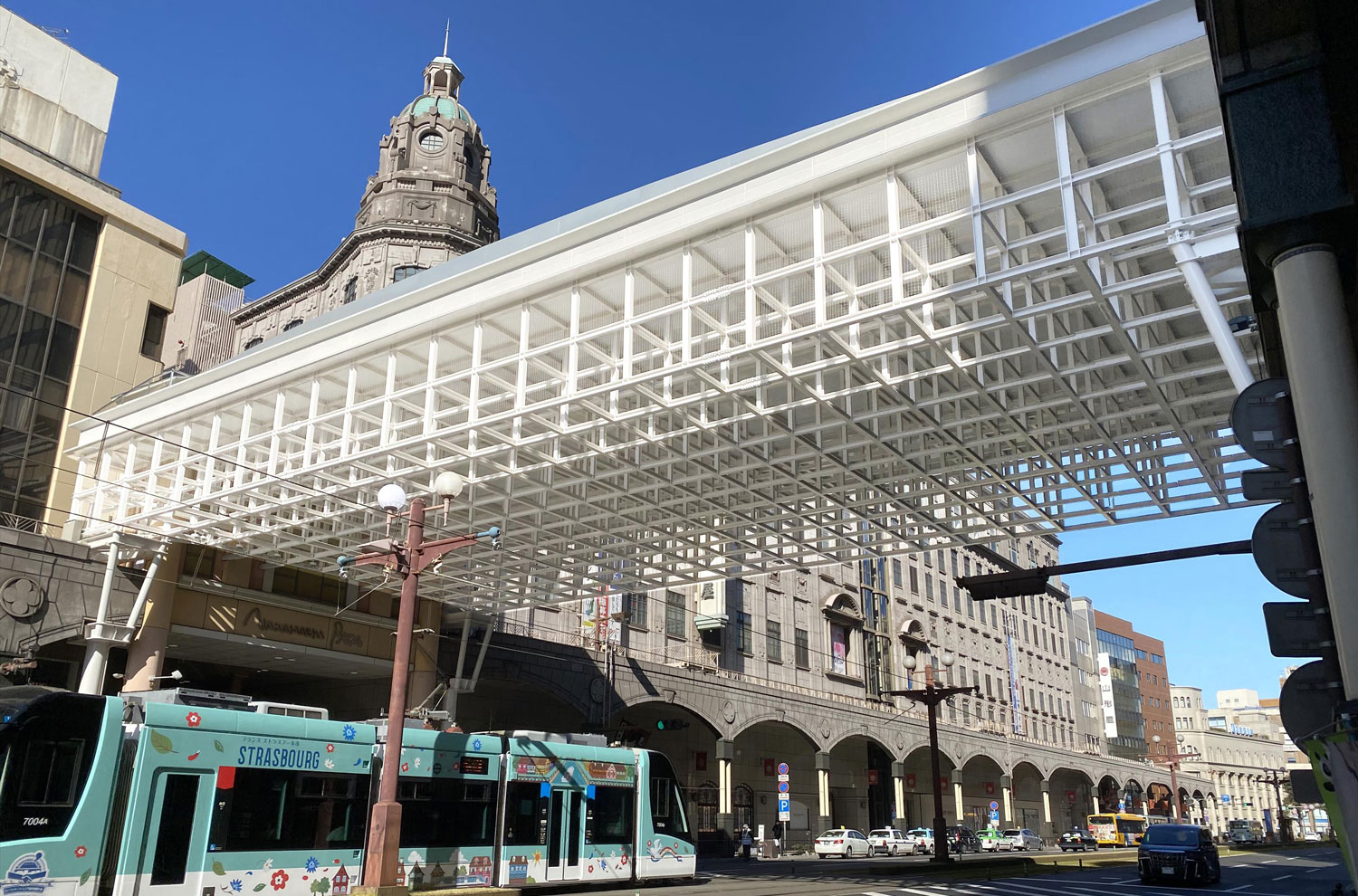 鹿児島市の繁華街『天文館』山形屋百貨店前の交差点に新しいアーケードが誕生!