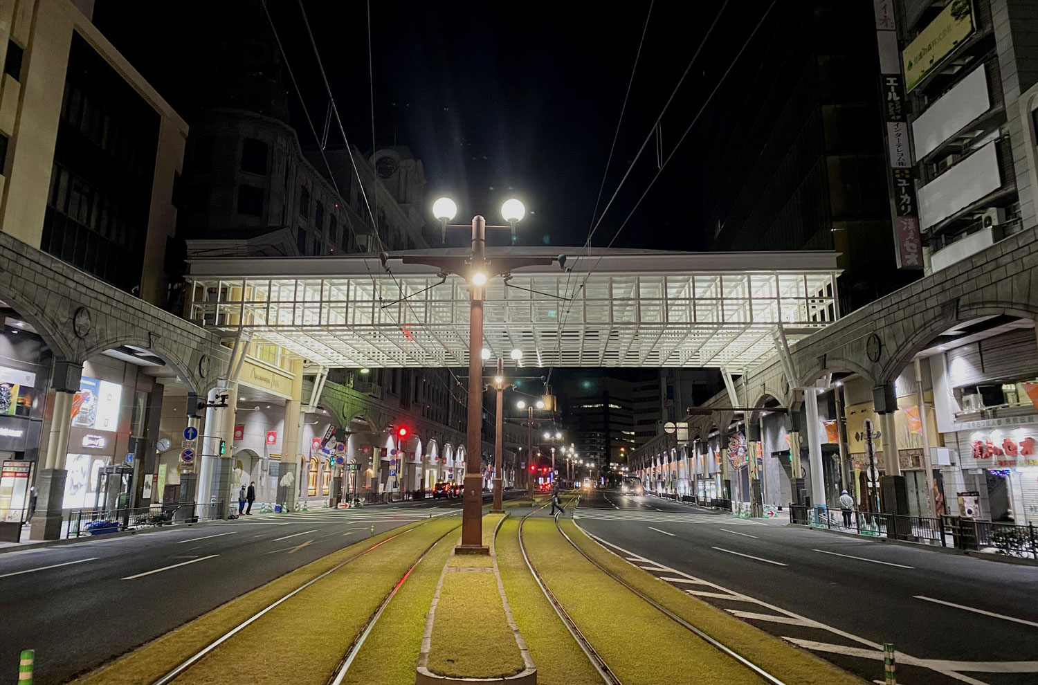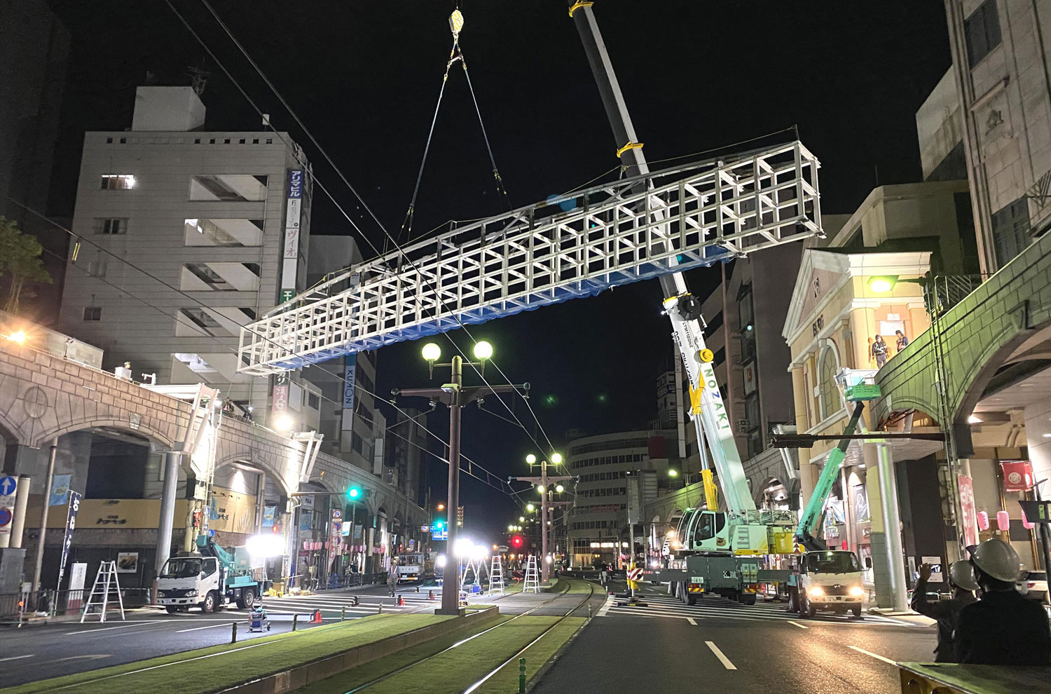 作業は全て夜間工事。市電の最終電車が通過した後、始発電車が動く間の時間に全ての工事が行われました。